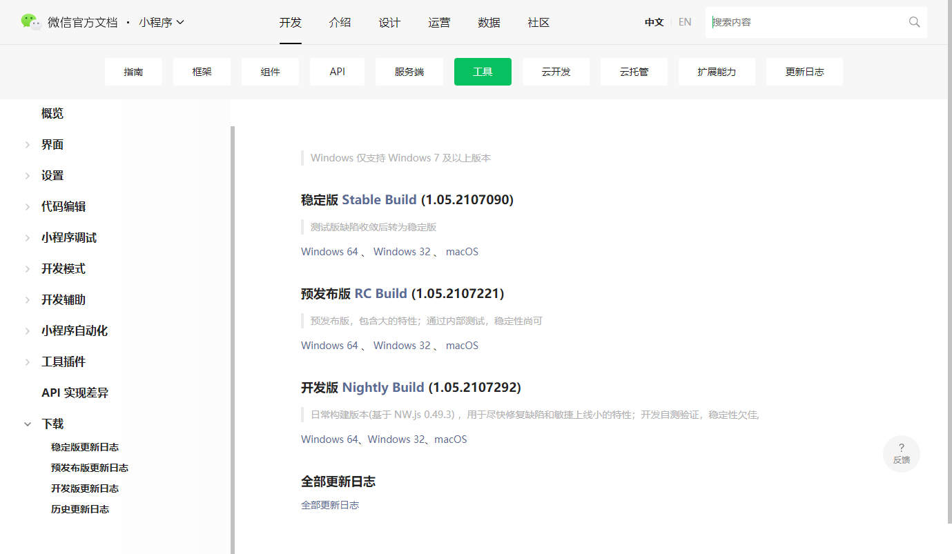 4、下载并安装微信开发者工具,选择电脑版本对应工具下载