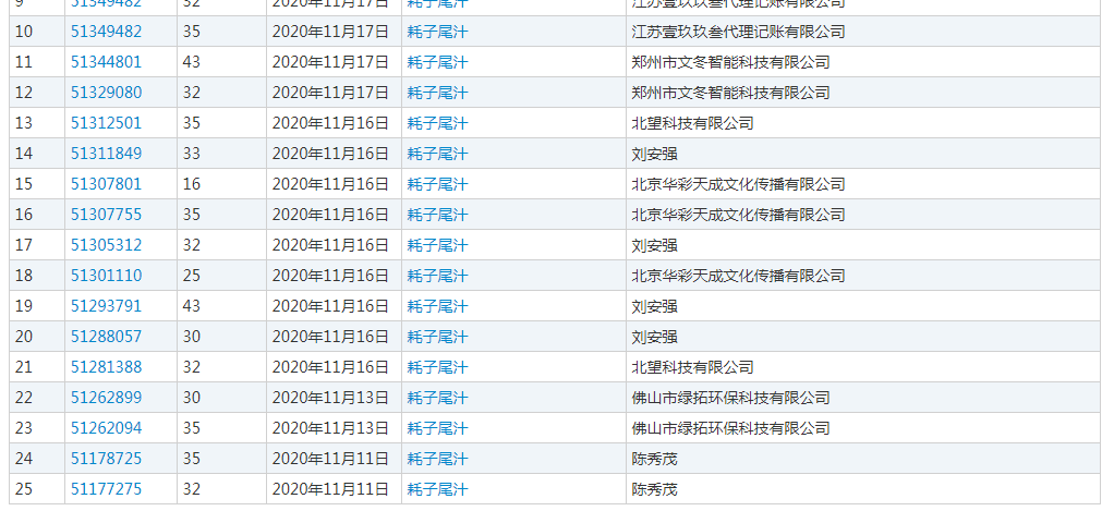 更有甚者,在大家都忙着剁手的双11,就开启了“耗子尾汁”商标抢注争夺战。据网传,有公司表示已有人打算出价15万以上购买此商标。