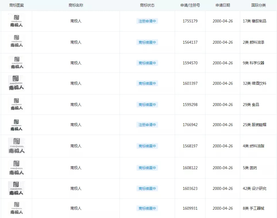 到了2000年,南极人公司重点注册“南极人”商标,45个类别全类保护,十分重视品牌的商标布局。