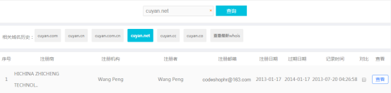 域名方面,根据whois信息查询到,Cuyan.com/.cn/.com/cn都分别在不同的投资人手中,Cuyan.net注册于2020年4月,有“粗盐”的含义,目前持有人显示为“Wang Peng”,有米友认为这是阿里某事业部总经理王鹏代为注册的域名。
