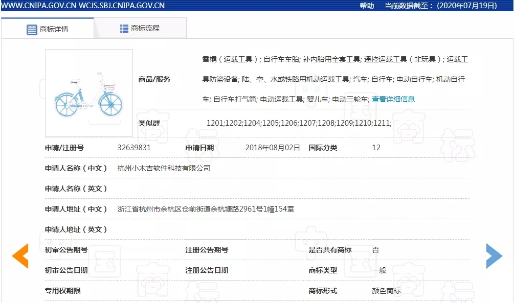 为此,青桔单车的运营公司杭州小木吉软件科技有限公司(下称小木吉公司),不仅申请注册了“青桔”、“青桔护卫队”、“QINGJU”等相关文字图形商标,还将颜色组合给注册成商标。
