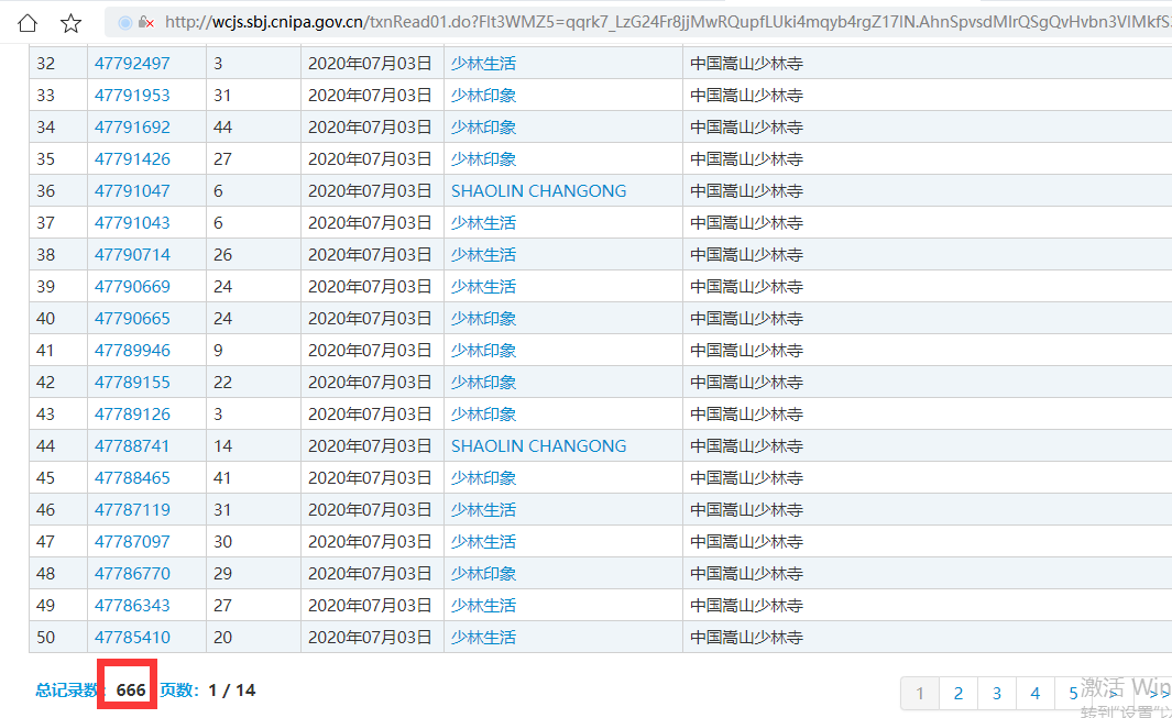 从1997年起至发文前,中国嵩山少林寺共计申请了666个商标,其中大多数与少林相关。广泛申请的“少林功夫”、“少林印象”、“少林生活”、“少林寺”等商标,有些甚至涵盖了全品类。
